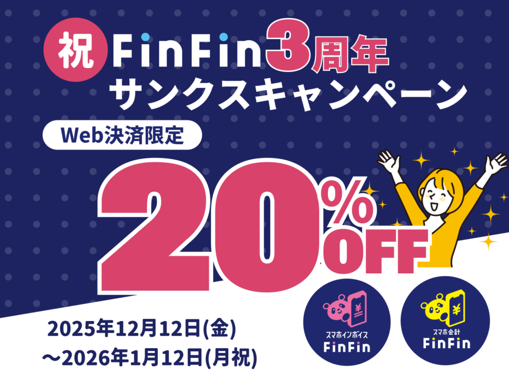 ・キャンペーン期間中に、スマホ会計FinFin または スマホインボイスFinFin の 有料プラン(年プラン) を新規でお申し込みいただいた方