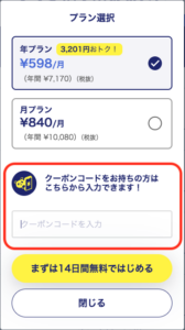 ・無料トライアル期間中(有料プラン申込後14日間)に有料プランを解約された場合、またはキャンペーン期間外にクーポンコードを入力された場合は、割引が適用されません。